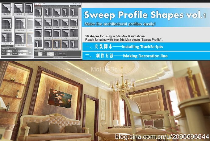 3dsmax石膏线插件TrackScripts扫描脚本快速制作欧式线条-MOHE素材库-设计行业的乐园,各类素材的矿山!