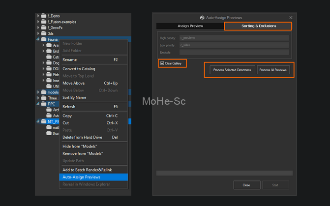 - 此外,顾名思义,该工具允许用户显示内容文件的预览。支持 3D 模型、材料库和 IES 文件。该工具适用于大多数 3D 文件格式,例如 max、3ds、fbx、vrmesh、abc、cgeo 等。