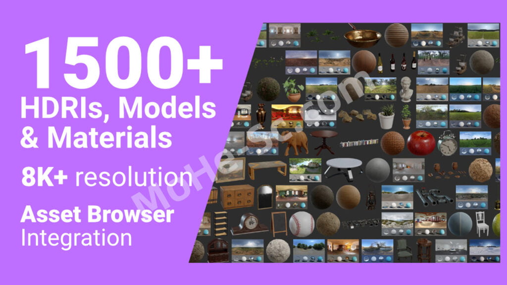 All of our assets are available for free on polyhaven.com. This add-on gives you faster access to them directly inside of Blender, and by purchasing it you’ll also be supporting our work to make more assets for everyone!