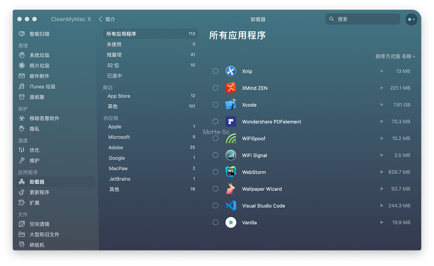 很多使用mac的人卸载应用程序的方法都是直接将图标拖至废纸篓,其实这个是没有任何作用的,卸载器可以帮助您扫描所有的应用程序信息,彻底卸载软件,无后顾之忧!