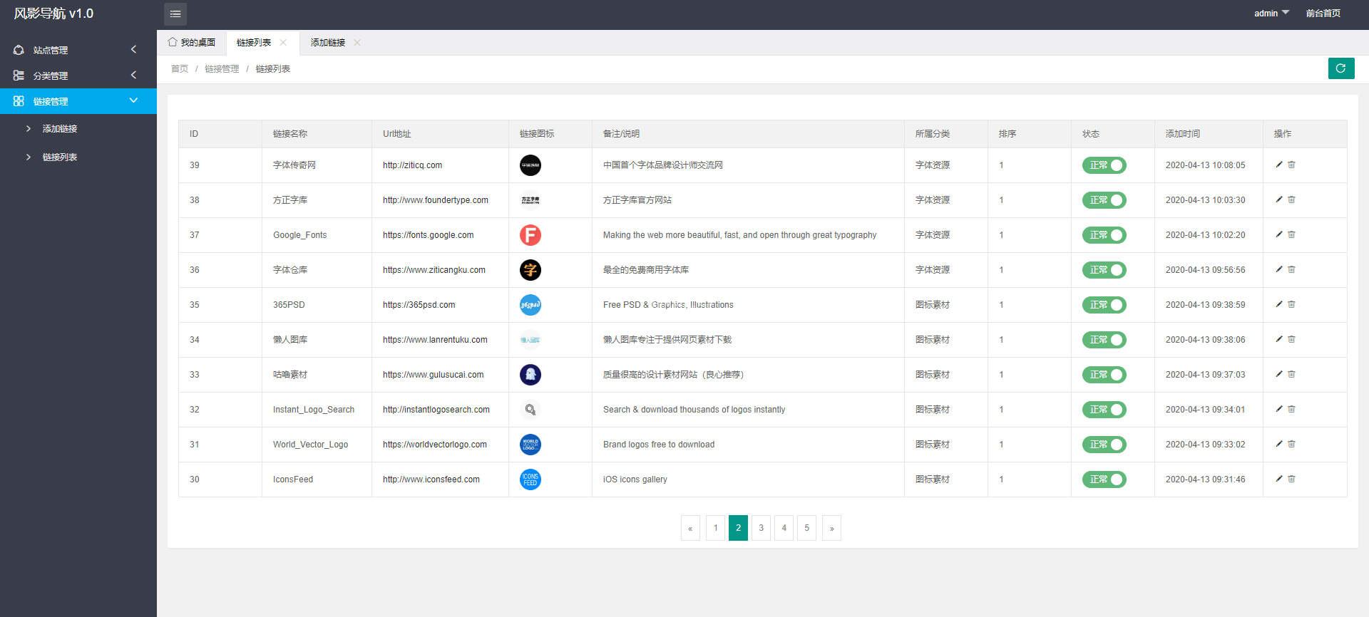 前端基于[WebStackPage]开发,后端基于ThinkPHP5开发,用户可以在后台自定义添加分类菜单添加书签链接及图片,一键设置前端显示的站点信息/Logo等。