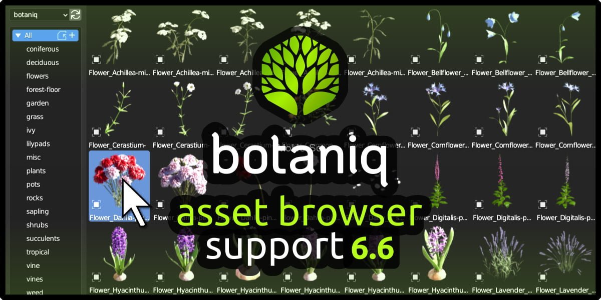 Botaniq Tree And Grass Library V6.6.1是Blender一个不断扩展的优化逼真的 3D 植被库 – 主要是树木和草地。 它具有各种树木、草、花、杂草、蕨类植物、常春藤、棕榈树、多肉植物、灌木、植物、花盆、岩石、睡莲和花园资产,用于建筑可视化、环境设计、渲染森林、景观美化或任何其他场景 可以使用一些不同的绿色植物。