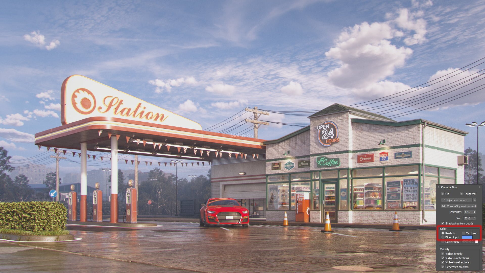 Corona 10,在太阳上使用直接输入以获得夜间效果。