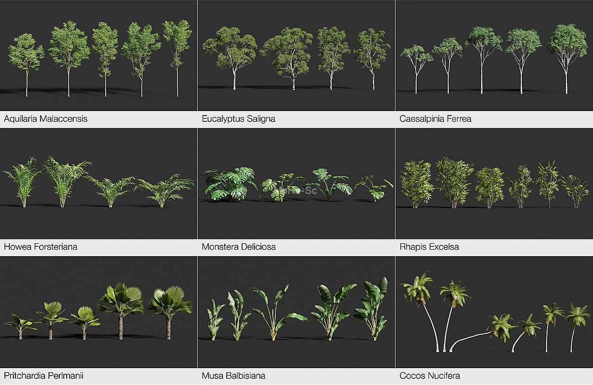 - 树木预设包:包含17种树木类型,每种树木包含6个不同形态效果,总大小134G