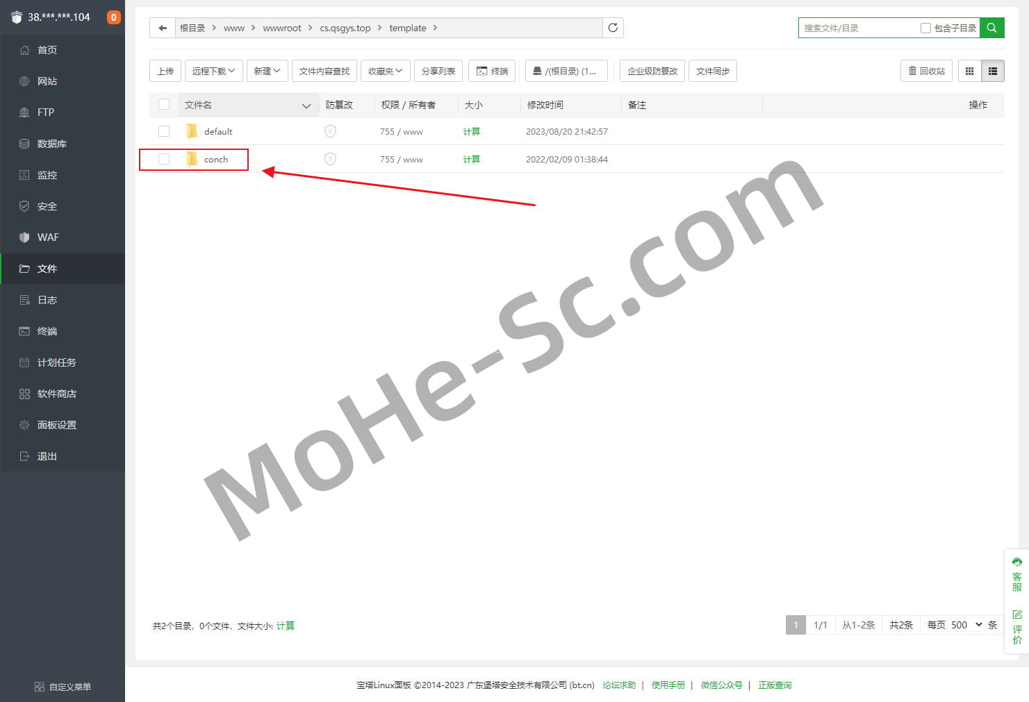 第三步:安装好后下载海螺模版上传到文件夹/template后解压