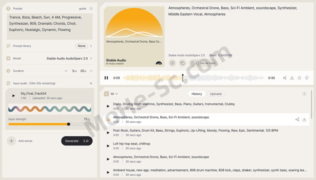 Stability AI 公司表示:“虽然它可以生成简短的音乐片段,但并不适合完整的歌曲、旋律或人声”。