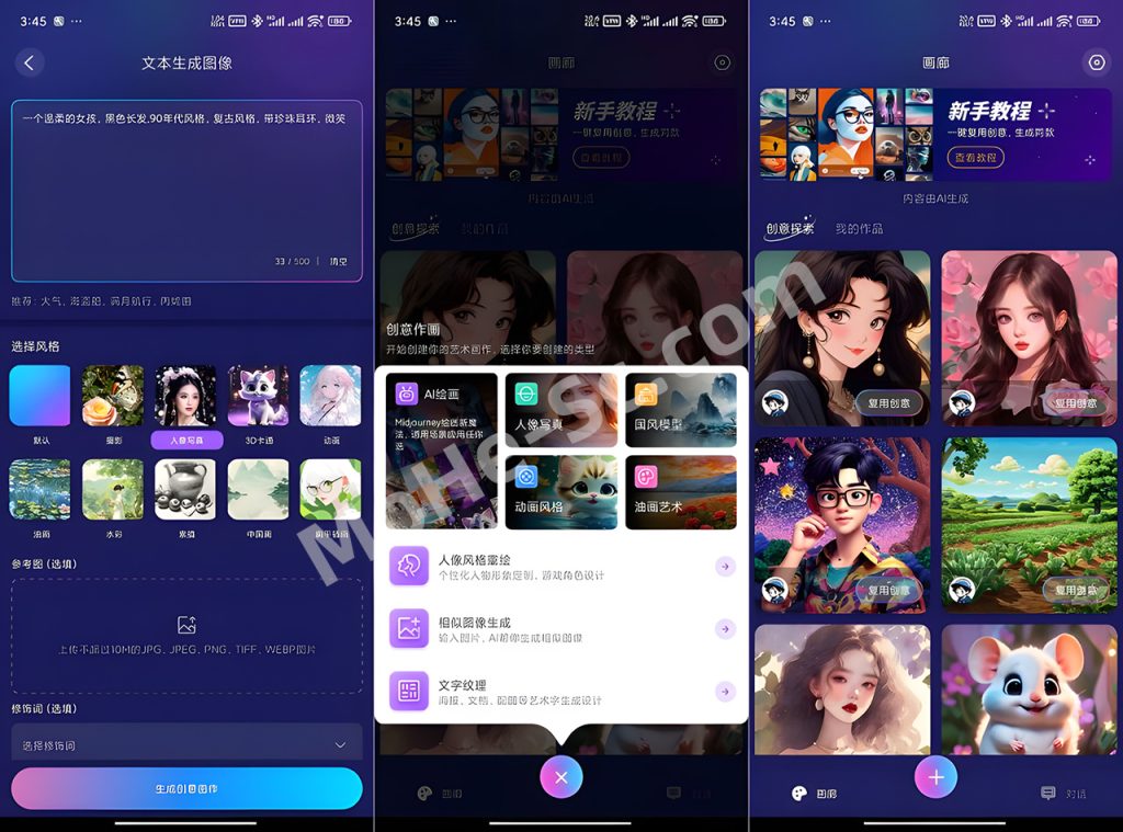 Midjourney绘画是一款通过AI绘画技术进行艺术创作的智能画图软件。在这里你可以使用AI绘画技术,快速地将你创作灵感、文字描述,变为创意十足的艺术作品;也可以导入照片,Midjourney绘画可转换成任何你想要的风格画作。