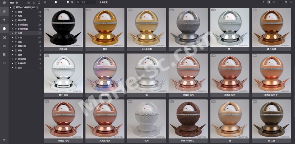 2025最新529套Corona Render 超写实物理材质库,包含529个常用材质,BM格式,可直接导入插件,材质库包含布料,木纹,金属,玻璃,皮革,涂料,油漆,外景等常用分类,所有预览图全部进行高清渲染,可直接调用。