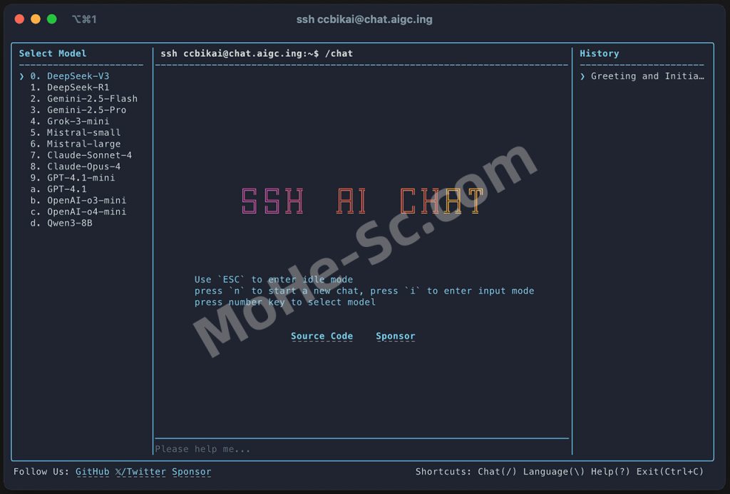 ![图片[1]-SSH AI Chat:最硬核的命令行AI 聊天工具!在 SSH 终端中轻松开启 AI 对话工具](https://www.mohe-sc.com/wp-content/uploads/2025/07/SSH-AI-Chat:最硬核的命令行AI-聊天工具!在-SSH-终端中轻松开启-AI-对话工具-1024x694.jpg)